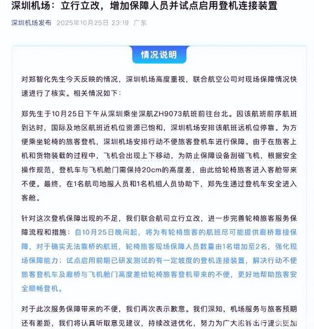 同时,也有意见认为,这件事客观上促进了社会对无障碍环境的关注。 深圳机场在回应中提出了改进措施,包括优化轮椅旅客的服务流程、增加服务人员等。