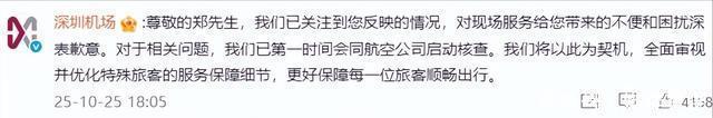 深圳机场在当晚做出了回应。 通过官方账号发布了情况说明,承认服务存在不足,同时公布了当时的监控视频。